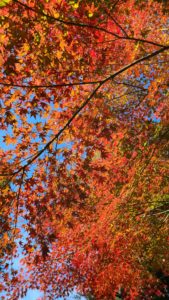 高く青い空と真っ赤なもみじとのコントラストが素晴らしく心を奪われました。