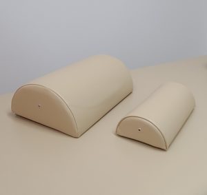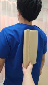 もともと他の用途で当院で使用しているかまぼこクッションが、弾力と高さがちょうどよく患者様の背中伸ばしに使用しておりました。