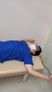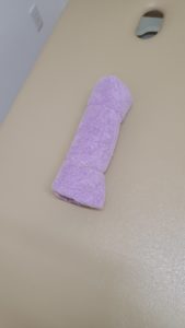 先日、テレビでも紹介しておりましたが肩甲骨の間に丸めたタオルを入れて仰向けで寝るだけ、というものです。