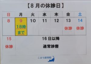 8月の診療は以下の通りとなります。